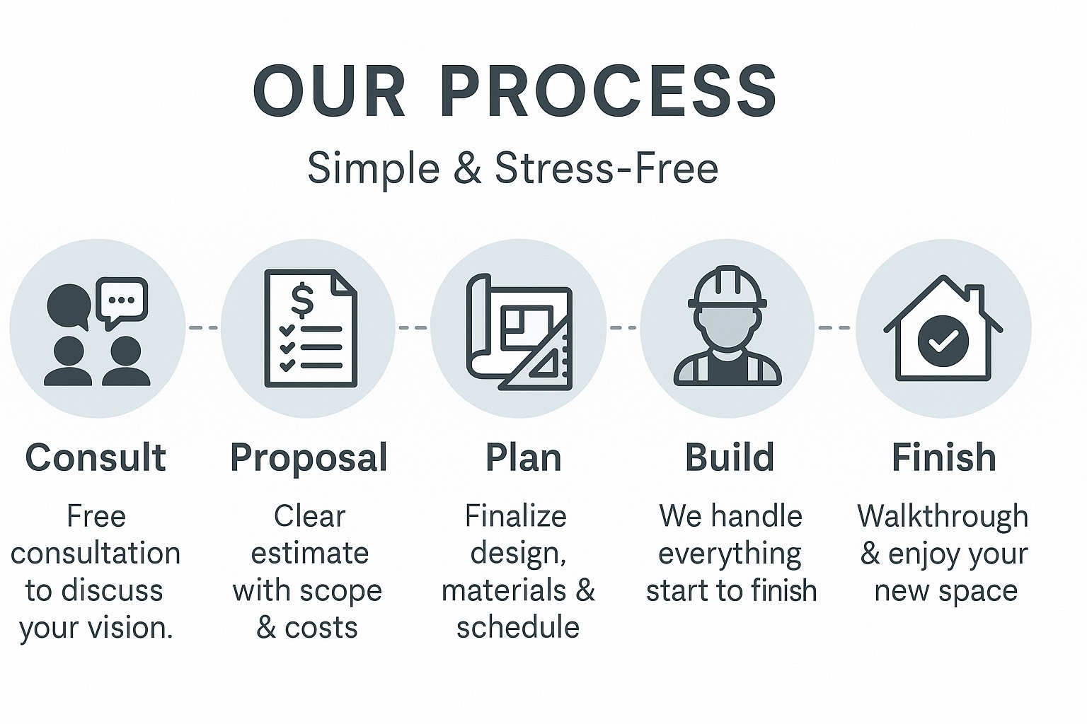 We start by listening. Tell us your ideas, needs, and budget. We’ll walk the space, answer your questions, and share expert guidance.